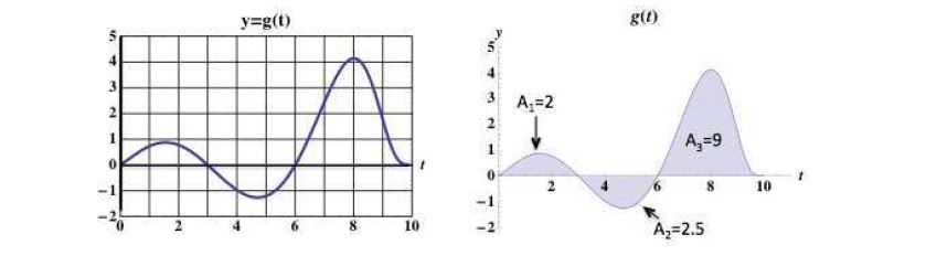 The graph of \(g(t)\) and the areas \(A_1, A_2, A_3\) are given below.
